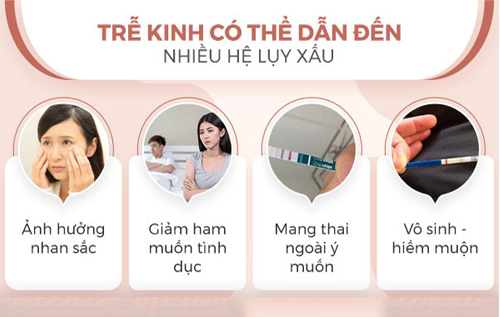 Các bác sĩ chuyên khoa cho biết, trễ kinh dù rằng không gây hại lập tức cho sức khỏe, song nếu chậm trễ trong việc điều trị sẽ ảnh hưởng nghiêm trọng đến tâm lý, khả năng sinh sản sau này của chị em, cụ thể như: